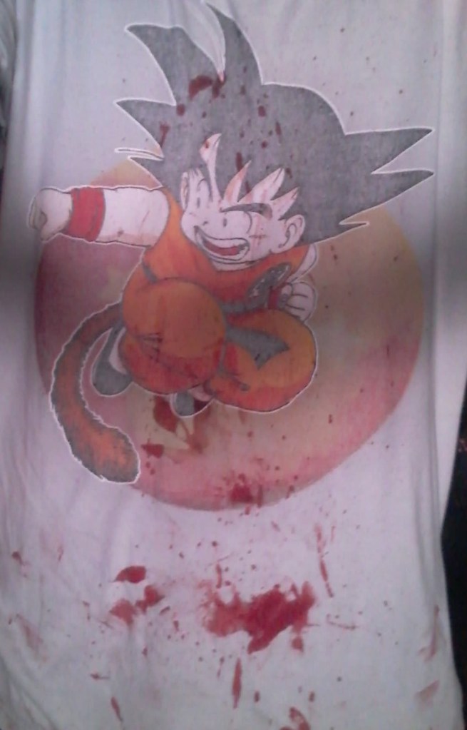 être aussi vaillant et fort que lui pour survivre aux concerts. Du coup j’avais ce délire de Dragon Ball lié au Hardcore. Et ce même t-shirt, je le mettais à chaque concert auquel j’assistais. C’était ma tenue de combat. Sauf que parfois, j’enchaînais plusieurs concerts des jours d’affilés et je me disais « à quoi bon le laver, demain je serais de nouveau couvert de sueur, de sang ou autre liquide humain ». Alors, je le gardais avec moi (parfois sur moi), sale comme jamais et je ne le lavais pas.