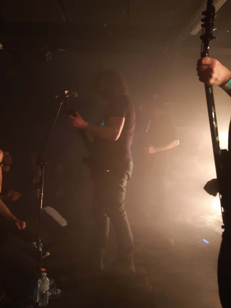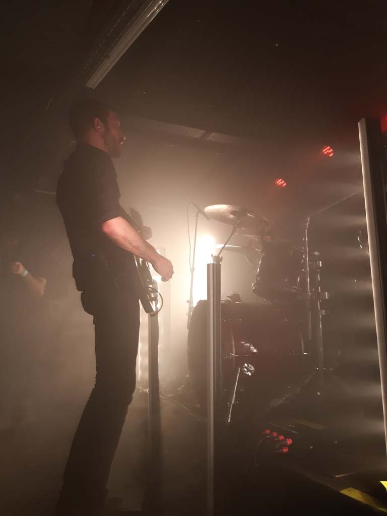 C’est avec d’énormes sourires de la part du public que le groupe a été accueilli sur scène. Le concert commence comme l’album avec « On the Dry Lake » qui nous annonce le ton et le tempo de la soirée. Et comme en écoute studio, Hypno5e nous a enveloppé de sa musique et nous a propulsé dans leurs différentes histoires. Huit musiques de A Distant (Dark) Source étaient présentes sur la setlist, mais le groupe nous a également régalé en nous jouant « In Our Deaf Lands » et « Tío » de Shores of the Abstract Line. Que de frissons lorsque le public chantait en chœur les passages clairs. Et lorsque ceux-ci étaient électriques et violents, le public hochait de la tête, quelques headbangs par-ci, d’autres par-là, sans oublier les pogos. Le public vivait la musique, laissait son corps se faire guider, s’imaginant les histoires qu’Hypno5e nous a contées.