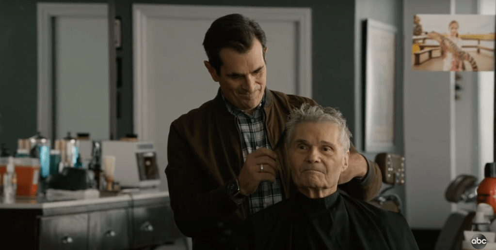 Une des particularités du rapport familial est qu’il se situe hors du temps, mes parents s’inscrivant dans un espace métaphysique : ils sont toujours–déjà mes parents. C’est cette question du temps qui, par le prisme de la fin, est au cœur de cette dernière saison de Modern Family. En ce sens, l’épisode « Legacy », qui voit Phil, un des parents, partager un dernier moment de vie avec son père, qui meurt, impose le terrible passage du temps (On notera que Fred Willard, qui incarne ce père, est décédé le 15 mai dernier). En contraste, dans une logique de cycle, l’épisode « Spuds » se focalise sur la question de la transmission, puisque la famille voit grandir une nouvelle génération et les personnages qui étaient enfants sont désormais adultes. Souvent, les épisodes insistent sur le changement : Mitch et Cam déménagent, le restaurant préféré de la famille ferme, l’ancienne secrétaire de Jay veut absolument partir à la retraite. Ce « hors-temps » familial est presque recréé par la série elle-même. Il y a comme un redoublement du quotidien, à la fois avec le quotidien des personnages que l’on suit et à la fois avec la présence récurrente de la série chaque semaine. La valeur temporelle prend toute sa puissance puisqu’elle installe ainsi une véritable proximité. Cette famille, on en fait partie, d’une certaine façon.