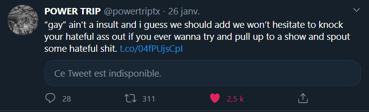 Merci Riley, merci pour cette musique, merci pour cette énergie, merci pour tout. Tu auras changé ma vision de la musique et plus particulièrement celle du thrash metal. Je n’oublierai jamais la première fois que j’ai entendu Nightmare Logic, en voiture, la fois où mon bras a été cassé sur « Firing Squad » (Nightmare Logic), la fois où j’ai déballé mes cadeaux de Noël pour y découvrir une place pour leur tournée en compagnie de Lamb of God et Kreator à l’Olympia en Avril 2020, qui sera finalement reportée à décembre 2021 et puis, qui aura peut-être lieu sans Power Trip. Je n’oublierai pas. Et surtout, je continuerai de dire, d’écrire, à quel point Riley était un homme talentueux, qui ne méritait pas de mourir si jeune.