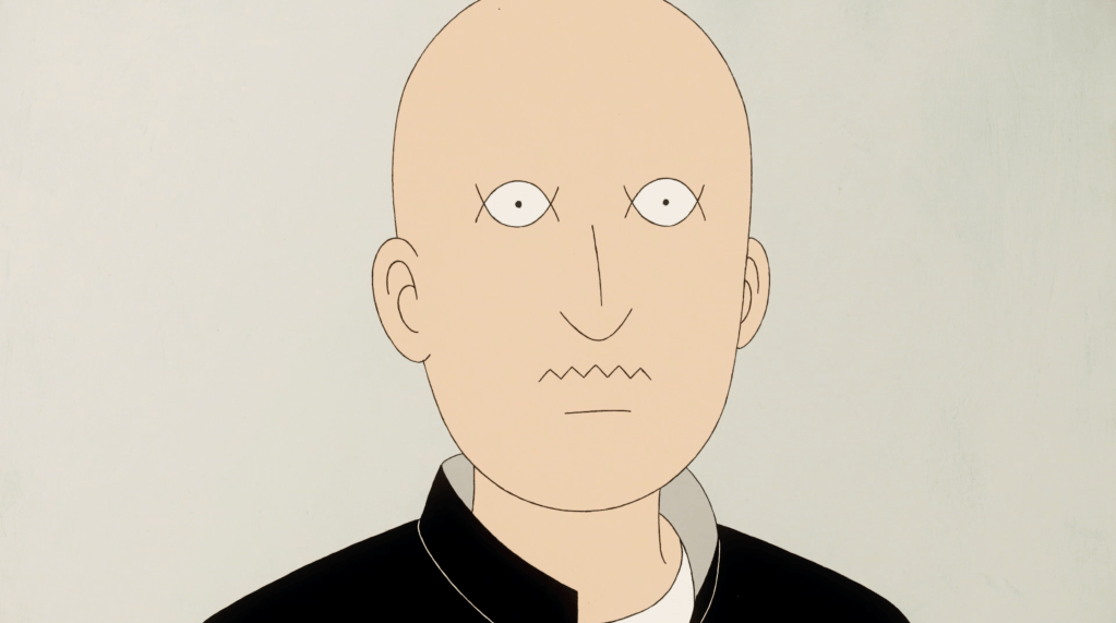 On-Gaku était clairement la curiosité à part dans la sélection d’Animēshon cette année. Avec son humour absurde, sa lenteur pachydermique et son récit lacunaire qui revisite de manière triviale la mythologie rock, le film de Kenji Iwaisawa séduit tout autant qu’il désarçonne. Adapté d’un manga de Hiroyuki Ōhashi, On-Gaku suit sur une très courte durée – 1h10 à peine – le quotidien de trois lycéens oisifs et presque apathiques, qui décident de monter un groupe le jour où leur meneur Kenji se retrouve par hasard en possession d’une basse électrique. Totalement inexpérimentés et semble-t-il complètement ignorants quant à la notion même de musique, les trois amis se contentent de marteler mécaniquement leurs instruments – deux basses, un tom basse et une caisse claire –, en étant visiblement fascinés par le résultat. Cette incongruité d’un rapport primitif à la création donne aux personnages une candeur en total décalage avec leur environnement, sorte de variation dévitalisée et ridicule autour des films de lycéens loubards.