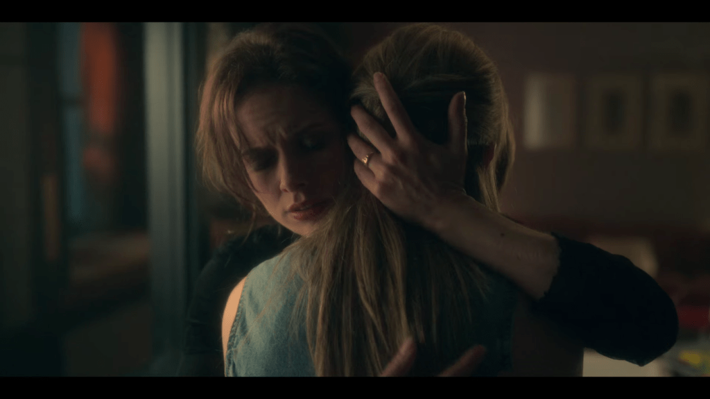 Au cinéma, les portes et les couloirs ne sont jamais filmés par hasard. Cette idée simple permet aux réalisateurs de la série de déployer toute une hantise à travers les espaces du manoir. D’étranges silhouettes ne cessent alors d’apparaître dans la profondeur de champ, leur angoissante fixité n’ayant d’égale que leurs disparitions soudaines, toujours d’un plan l’autre. Parfois, ce sont des portes qui s’ouvrent légèrement, avant de reprendre, dans ces invisibles interstices du montage, leur position initiale. Et tout cela se fait dans le silence, jamais de jump-scare, l’horreur n’étant pas, dans Bly Manor, de l’ordre de la facticité. Alors, comme dans les grands mélodrames spielbergiens, les créatures ne sont là que pour servir aux relations unissant les personnages, venant figurer de profonds traumatismes, à l’image de cette silhouette suivant sans relâche Dani dès le premier épisode, apparaissant dans les miroirs, qui n’est autre que son ex-fiancé, décédé violemment sous ses yeux.