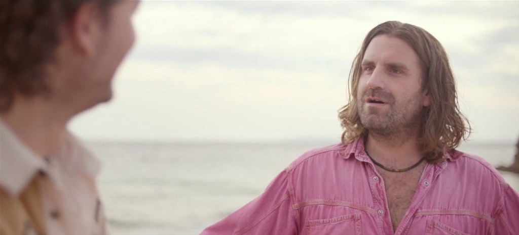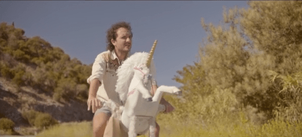 Les gags ne font ainsi que se répéter, ou se faire écho entre eux. Nous assistons un nombre incalculable de fois à leur fameux check Taureaux, avant une scène sur les origines mystérieuses de cette salutation à la fois si unique et si simple. Puis il y a tous ces moments d’attente (comme celle au bord de la piscine ou de la plage), qui s’alternent avec des instants de jeu (comme la bataille de bouées dans la piscine). Divers objets apparaissent comme des tâches dans un décor falsifié par la photographie pastel, comme ce vélo en forme de licorne rose, qui permet de tracter une voiture tombée en panne. La liste de ces éléments peut se prolonger facilement, mais ce qu’il est juste de rappeler, c’est cette façon de les faire tous coïncider avec une forme de degré zéro de l’interprétation. En cela, la fausse morale du film vient se moquer de la bêtise à vouloir donner une signification là où il n’y a qu’innocence de l’esprit – les deux amis assis côte à côte affirment que rien n’est plus important que l’amitié, avant de se remettre à rire bêtement.