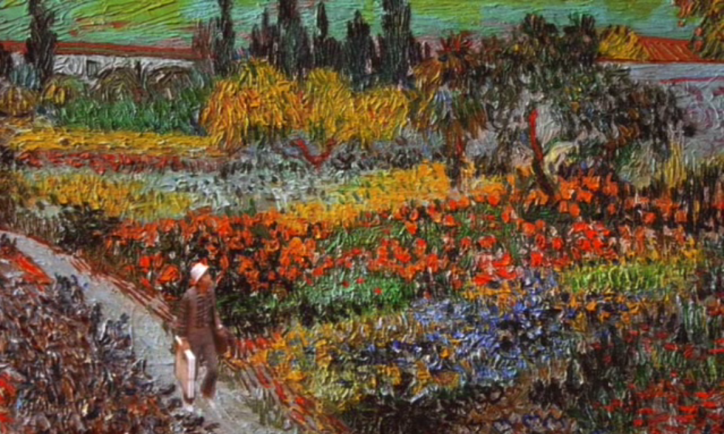 Le cinéma de Kurosawa part toujours de grands ensembles, d’espaces macroscopiques, et se rétracte au fur et à mesure de l’action, s’attache aux détails du cadre. C’est la logique cartographique dans Les 7 samouraïs : partir d’un grand bloc (le village), avec un ensemble large de données (les habitants, les caractéristiques géographiques du lieu, les infrastructures), dans lesquelles on pénètre afin de trouver l’inconnu et la résolution au problème. La séquence de perte de Van Gogh au cœur de ses toiles dans Rêves illustre ce phénomène de façon beaucoup plus figurative, voire onirique. On part des toiles, du cadre du tableau, puis on s’immisce à l’intérieur, on s’aventure dans les détails de la matière picturale (la texture même).