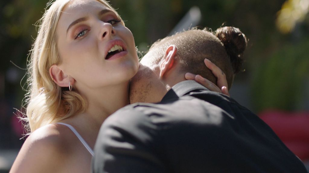 Il faut en effet préciser deux choses. Pleasure se concentre sur un des lieux de production majeur de contenus pornographiques au monde : Los Angeles. Chaque jour, des femmes arrivent pour démarrer une carrière. Elles sont logées sur place et des tournages leur sont proposés quotidiennement. C’est précisément ce parcours que suit le personnage principal, Bella Cherry de son nom d’actrice, qui arrive tout juste de Suède au début du film. Bella découvre une industrie présentée de manière semi-réaliste. On y voit par exemple un tournage chez Kink avec la réalisatrice Aiden Starr ou bien chez Blacked.com, deux sites bien installés. Plus encore, de nombreuses figures tiennent des rôles importants dans la distribution, sans « jouer » pour autant sous leur nom de scène. Evelyn Claire incarne ainsi Ava, une sorte de rivale qui fascine Bella, et Chris Cock un initiateur avec qui Bella va tourner une scène particulièrement difficile et douloureuse.