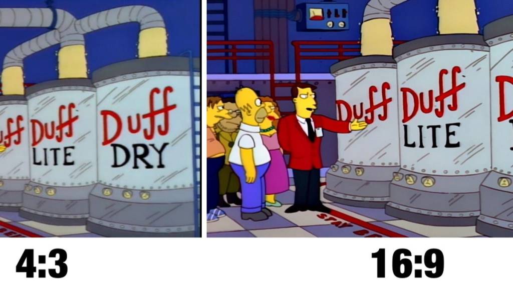 Il suffit de voir comment la série de Matt Groening s’est dégradée avec l’arrivée du numérique et du 16 :9. La disparition du format cartoonesque et du dessin fait perdre une identité visuelle de laquelle découle le brio de la série. Beaucoup ont jugé qu’il s’agissait d’une perte scénaristique, or il me semble qu’il s’agit bien davantage d’une perte visuelle, paradoxalement amenée par un ajout qualitatif des modes de production (amélioration de l’image et du son). En ce qui concerne l’écart entre les épisodes des 20 premières saisons et leur transposition au format Disney+, la mise en scène n’est plus la même, car le choix du format est différé des choix de production, et donc le résultat est altéré.