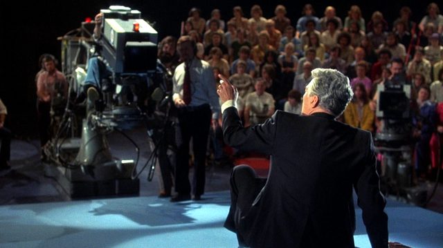 Le film de Lumet interroge doublement l’idée d’émancipation. L’émancipation de l’individu, d’abord, vis-à-vis de l’idéologie dominante que véhiculent des institutions avant tout gouvernées par un système économique et financier. Mais Network questionne aussi l’idée d’une émancipation de la matière visuelle, de la manière dont une image finit toujours, en dernière instance, par imposer une certaine représentation du monde. Les images font sens en imposant un sens : sur ce point, Lumet partage le constat tragique et pessimiste des cinéastes de tout un pan du cinéma américain de la fin des années 1970, après ce qui s’annonçait comme un véritable âge d’or de la libération des esprits et des formes – grossièrement désigné comme un « Nouvel Hollywood ».