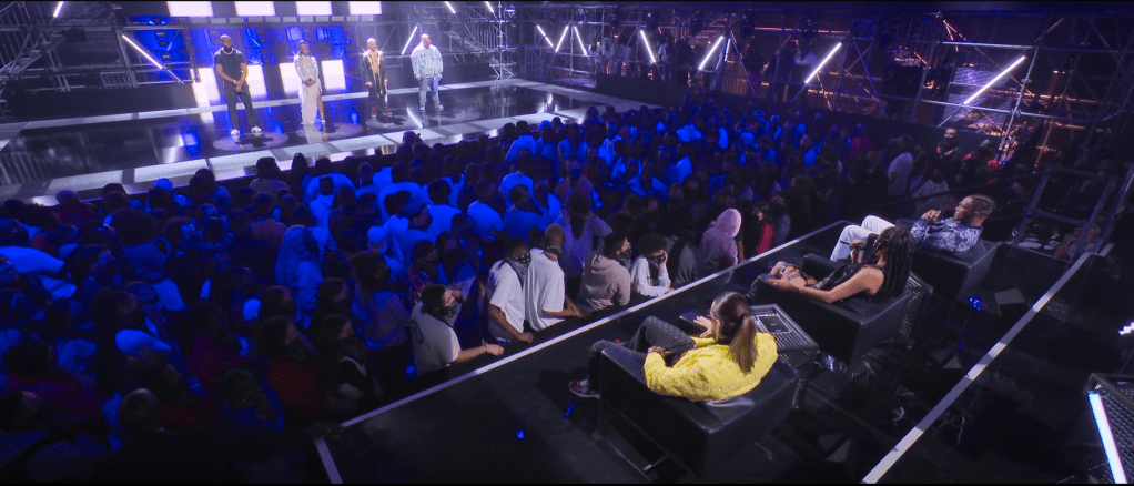 Les plans sont très souvent serrés, se concentrant sur le visage des candidats et candidates, ne permettant que très rarement de leur donner une existence sur scène. Au mieux, la politique du moindre effort se contente de multiplier les plans débullés, cliché très fatigué des clips de rap. La salle, assez petite en terme de superficie, donne l’impression que tout le monde est très serré, qu’il s’agisse du jury ou du public.