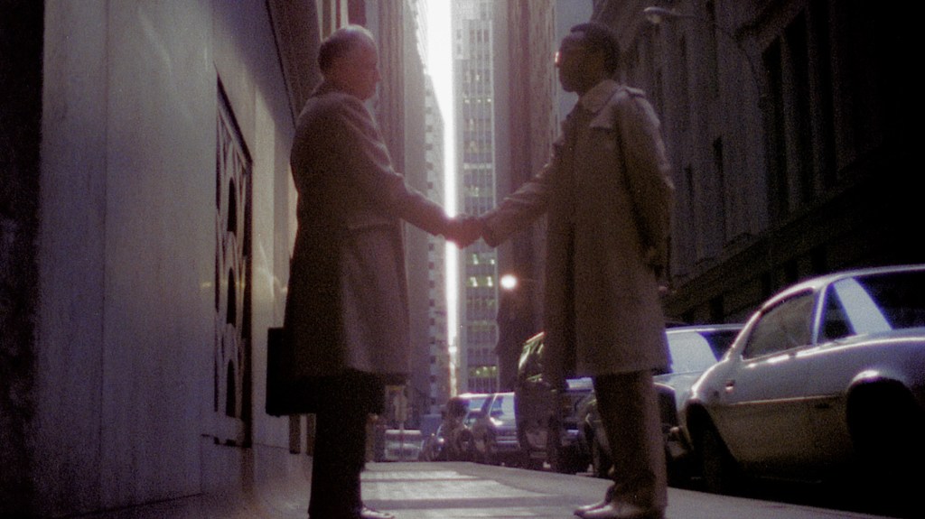 Christine endosse le rôle d’intermédiaire entre le monde des hommes et leurs fantasmes. La salle dont elle tient le guichet, ouverte directement sur un trottoir et ses passants, fonctionne comme une caisse de résonance. New York est sans visage, n’apparaît que sous la forme de lignes de fuite abstraites. La devanture, cadrée systématiquement de face, donne lieu à une exploration du portique mental, la mécanique par laquelle Christine est la passeuse pour ses clients entre la vie réelle et fantasmée. Mais si ce lieu est un portique mental, il peut aussi bien mener à des désirs d’hommes – Mark et Louie – qu’à ceux de Christine. La caisse de résonance n’est pas à sens unique, elle fonctionne aussi pour Christine – ce vers quoi ouvre cette entrée dans le cinéma porno c’est donc plutôt l’extérieur, le réel. Le désir qui est en débat est celui de Christine, plus complexe et plus riche, et Louie en est l’image-fantasme.