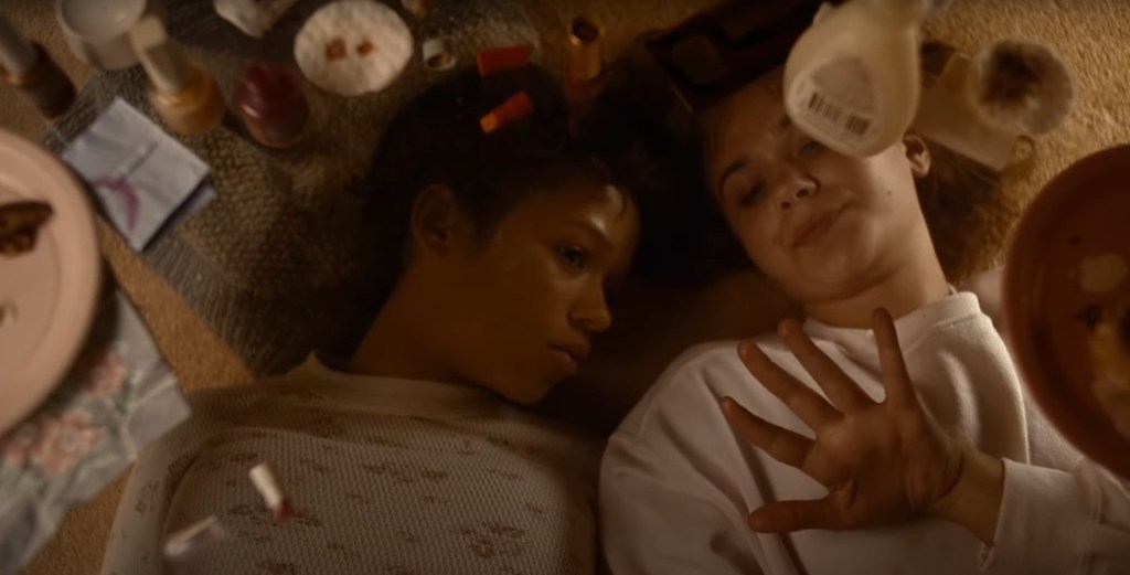 Ça arrive comme ça. Cadrées en plongée, deux adolescentes sont allongées à même la moquette d’un salon, côte à côte, épaule contre épaule. Au premier plan de l’image, placés sur une table en verre baignant les deux corps dans une intimité partielle, divers objets s’éparpillent : assiettes où refroidissent des restes, flacons de vernis à ongle et autres ustensiles de maquillage – autant d’éléments qui témoignent de la soirée ayant lieu dans le reste de la pièce, événement que les deux jeunes filles cherchent visiblement à fuir quelques instants (l’occasion, peut-être, de se rapprocher). La banalité de leur discussion – Maren (Taylor Russell), située sur la gauche, essaye de s’intégrer au sein de sa nouvelle école – est contrebalancée par l’installation d’une tension quasi-érotique. À la proximité des corps s’ajoutent des regards insistants, le rapprochement d’un visage. Bientôt, Maren prend la main de sa camarade, délicatement, avant d’introduire l’un de ses doigts dans sa bouche. N’en ressortent que des os où peinent à tenir des lambeaux de chair, tandis que des effluves de sang se répandent. La jeune fille ne peut s’empêcher d’agir ainsi. Elle se nourrit d’autres personnes depuis son plus jeune âge, comme l’indique son père sur une cassette audio qu’il lui a laissée avant de disparaître. Sur cet enregistrement, il insiste sur le fait qu’il n’a jamais essayé de comprendre pourquoi elle agissait ainsi, l’ayant toujours acceptée telle qu’elle est : comme ça.