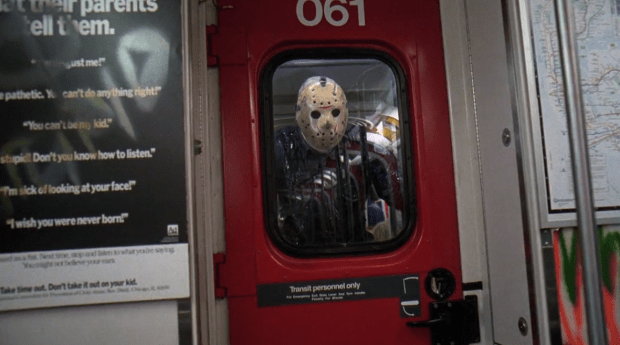 Le tour de force de Rob Hedden réside dans sa mise en scène du corps de Jason Voorhees, une figure dont les capacités physiques hors-normes excèdent totalement l’espace dans lequel il atterrit. Manhattan devient un terrain de jeu où le tueur, silhouette quasiment spectrale, semble en mesure de se téléporter d’un toit à l’autre, d’un étage au rez-de-chaussée, d’une ruelle à une grande rue, et cela uniquement durant le temps que durent les coupes du montage – Jason se déplace ainsi moins au sein des plans qu’entre les images. L’occasion, pour le meurtrier, de laisser dans son sillage encore plus de corps inertes que durant les précédents épisodes de la saga.